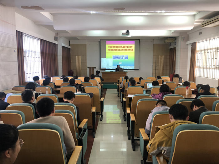 12月30日,物理与能源学院在理工3-102举行党的十九届五中全会精神学习会。福建省理论研究研究与宣传专家库首批专家、校党委讲师团成员郑又贤教授应邀作题为《学习宣传贯彻党的十九届五中全会精神开启全面建设社会主义现代化国家新征程》的辅导报告。学院全体教职工、学生党员聆听了报告。