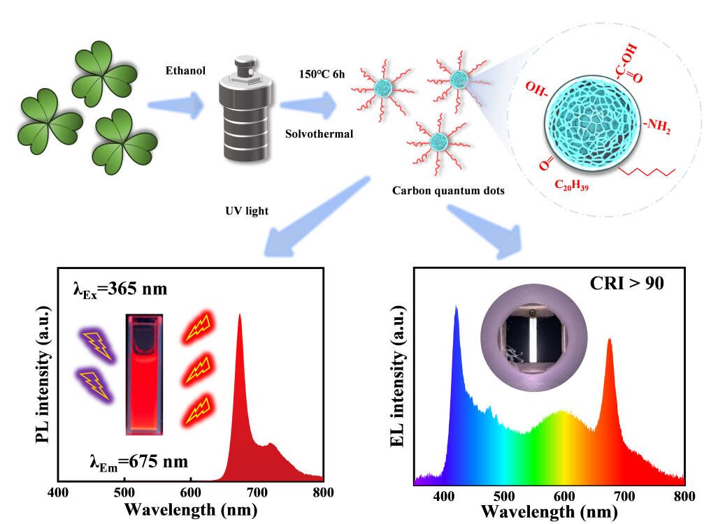 该工作以“Binary Host-induced Exciplex enabled High Color-Rendering Index of 94 for Carbon Quantum Dot-based White Light-Emitting Diodes”为题发表在国际期刊《Advanced Science》上。