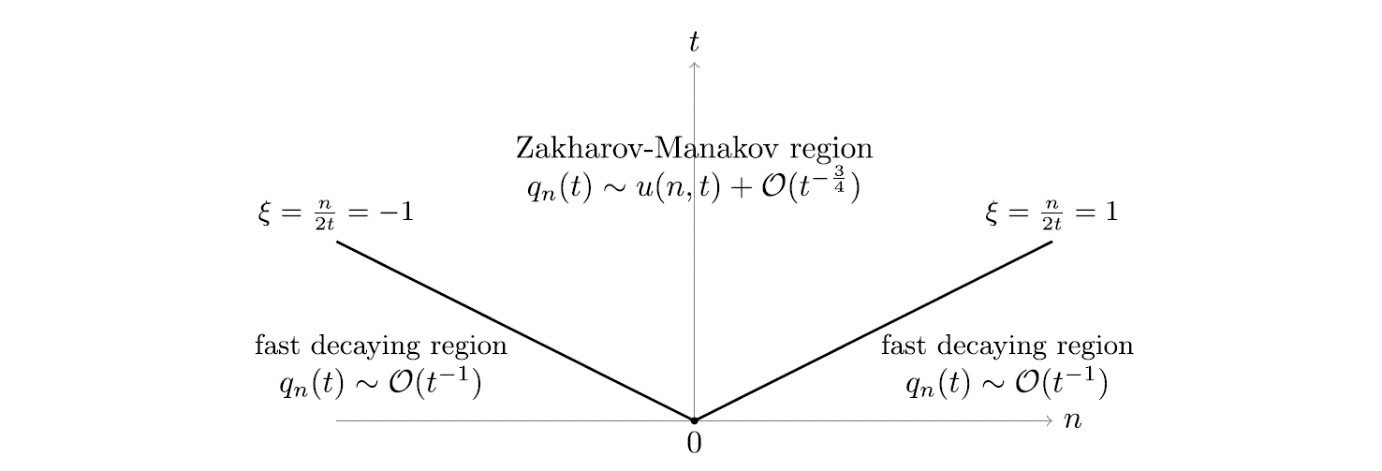 近期,OD(中国)一站式服务平台青年教师陈美森博士与复旦大学范恩贵教授和深圳大学贺劲松教授在国际纯数学领域的顶尖期刊《Advances in Mathematics》发表了题为“Long-time asymptotics for the defocusing Ablowitz-Ladik system with initial data in lower regularity”的重要学术成果。论文引入一种dbar最速下降方法,旨在探讨初值在低正则条件下,散焦Ablowitz-Ladik方程初值问题解的渐近性。主要思路是借助分析反射系数的性质,将初值问题对应的Riemann-Hilbert问题转换为dbar-Riemann-Hilbert问题,并通过一系列的变换来处理,最终分析得到初值问题解的渐近展开式。结论中得出在中心区域(Zakharov-Manakov区域),误差项关于时间的衰减速度为t-3/4,与NLS方程情况相符,而在两边区域(快速衰减区域),其衰减速度为t-1。