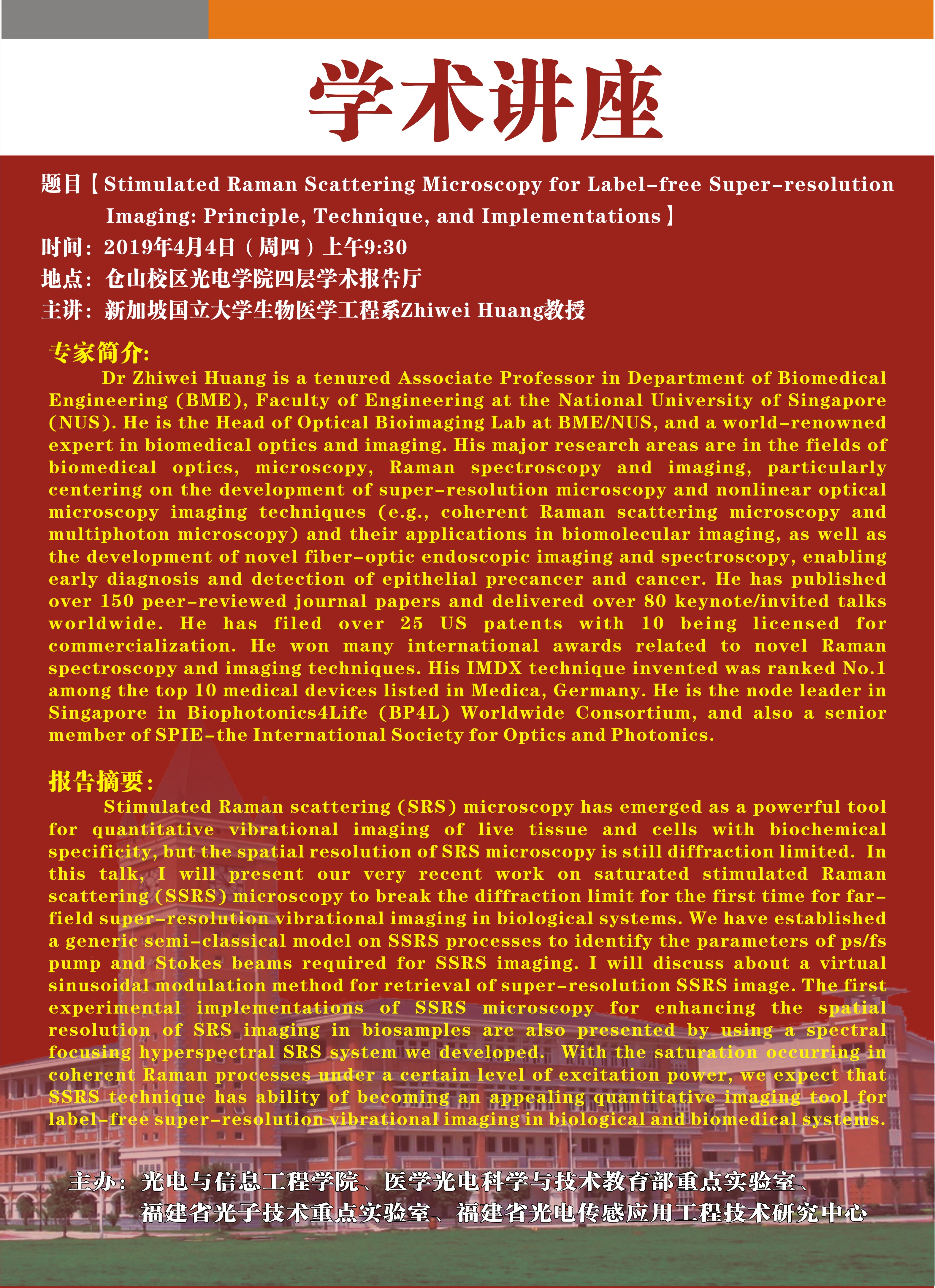 学术讲座【Stimulated Raman Scattering Microscopy for Label-free Super-resolution Imaging: Principle, Technique, and Implementations】