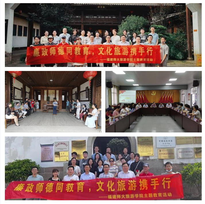 近日,旅游学院党委组织党员干部及教师代表前往城门镇濂江书院,仓山区螺洲镇陈氏家风家训馆开展“廉政师德同教育、文化旅游携手行”为主题的党风廉政暨师德师风建设教育活动,学院领导班子成员,各中心主任、各系主任、各教工支部书记、全体科级干部、辅导员及各系教师代表等近30人参加了活动。
