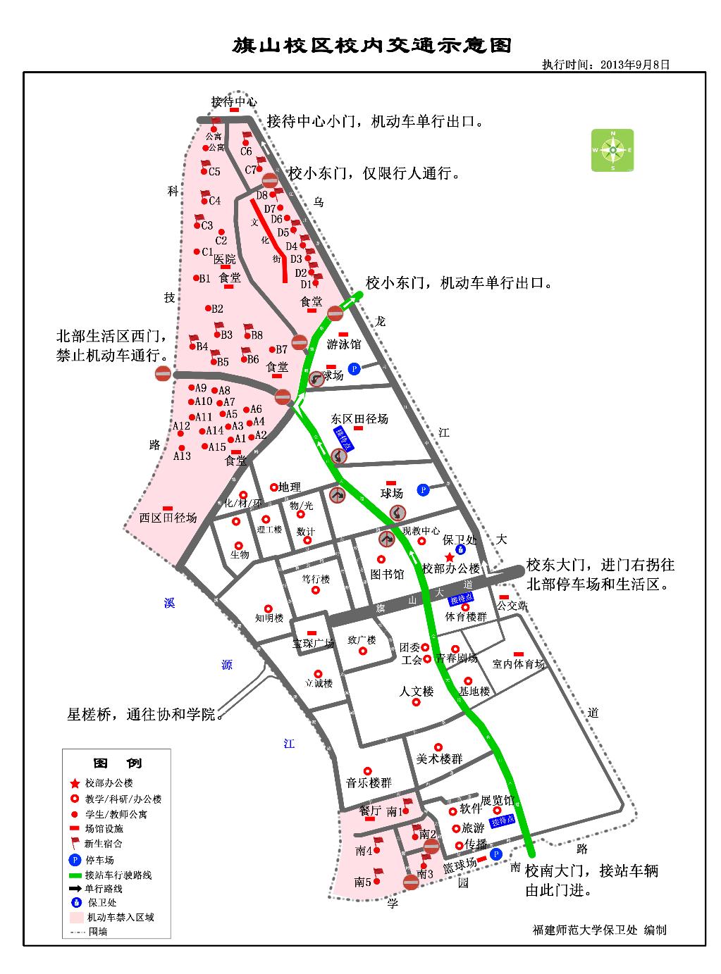 3.因校园(尤其是仓山校区)停车场地有限,为减少因车辆过多造成交通拥堵给您带来不便,建议住在学校附近的本校教职员工尽量不在9月8日开车进校,尽量不将机动车辆停在校内;建议新生家长尽可能不带车入校。