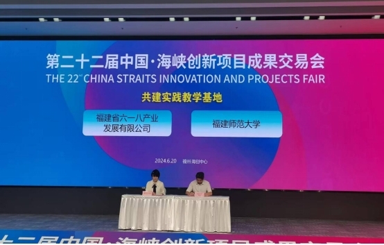 第二十二届中国·海峡创新项目成果交易会(简称“海创会”)期间,文化旅游与公共管理学院、福建省六一八产业发展有限公司举行共建实践教学基地签约仪式。