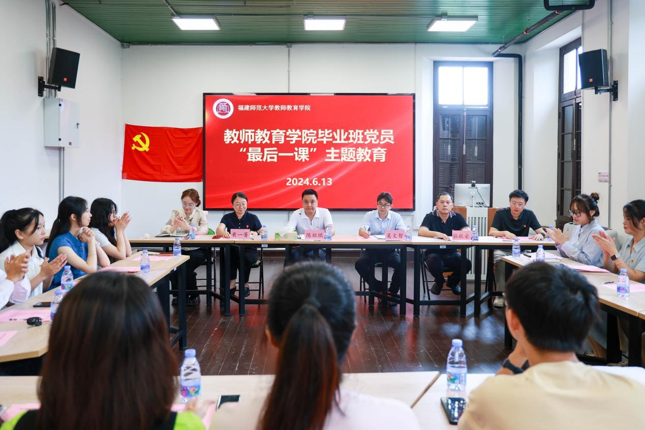 近日,教师教育学院举行2024届毕业生党员最后一课主题教育活动。学院党委书记陈祖棋,院长吴文哲,副书记黄一菁,副院长郭秋荣,2024届毕业班辅导员及全体毕业生党员参加活动。