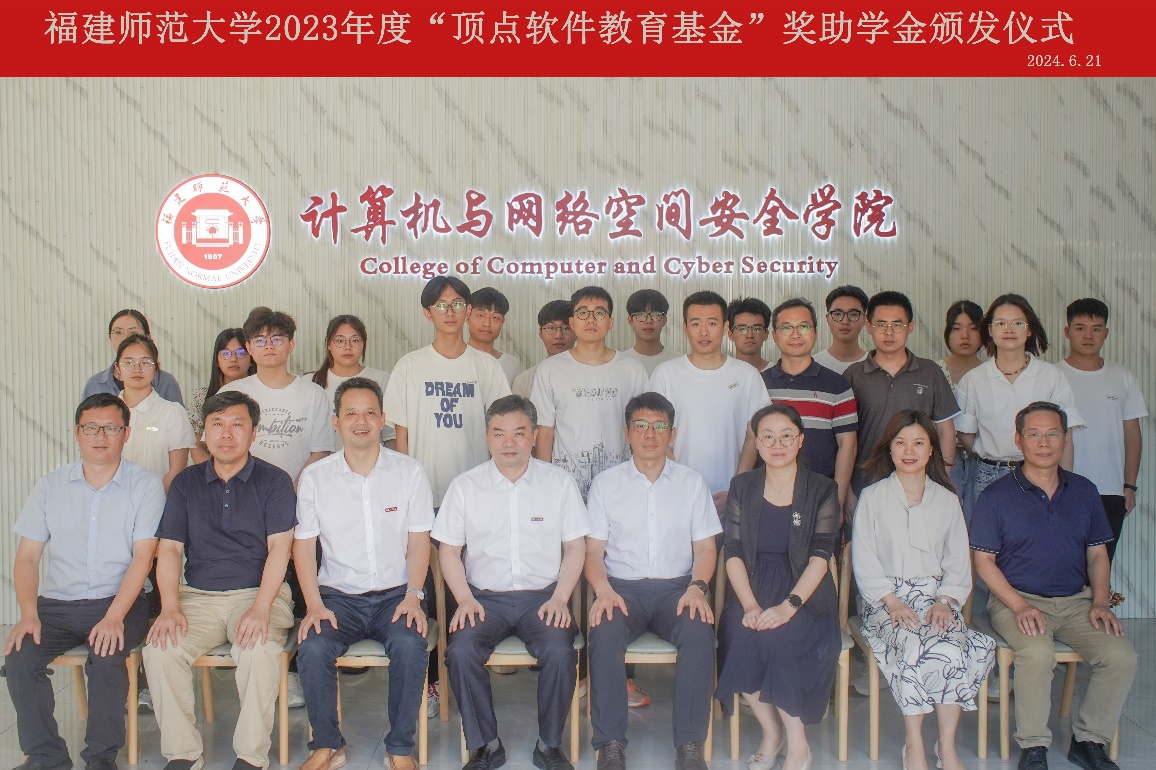日前,2023年度“顶点软件教育基金”奖助学金颁发仪式在OD(中国)一站式服务平台举行。福建顶点软件股份有限公司副总裁萧锦峰、人力资源总监程佳、人力资源招聘经理周玥,副校长吴剑锋,学生工作部、计算机与网络空间安全学院负责人,师生代表和受奖助学生参加活动。