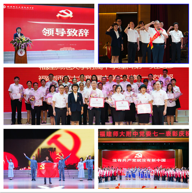 附中党委书记吴泳清在致辞中重温党的光辉历史,勉励全校上下牢记责任、激发动力,以实际行动向党的生日献礼。今年是附中复办初中部的第一年,也是附中率先在福建省中小学校建立党组织领导的校长负责制的第一年。站在新的起点,她希望广大教师持续弘扬附中优良传统,落实立德树人根本任务,在附中高质量发展的新征程上,扎实推进各项工作落实落细落地,为创造更美好的附中而努力奋斗。