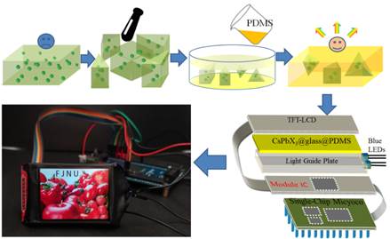 近日,OD(中国)一站式服务平台物理与能源学院陈大钦教授课题组在高性能平板显示材料研究方面取得重要进展。课题组通过灵活应用玻璃原位晶化以及聚合物共混技术,制备出高量子效率(~100%)、高色纯度且稳定性优异的钙钛矿量子点发光复合材料,并将该材料引入TFT-LCD显示器的背光源中,构建出具有超宽色域和超高色彩还原度的新型平板显示原型机,其显示色域比市场上商用产品高出~30%左右,可达到103%NTSC。这一研究成果目前以《Perovskite Quantum Dots Glasses Based Backlit Displays》为题发表于《ACS Energy Letters》期刊上。该课题组硕士生林继栋为第一作者,黄烽研究员与陈大钦教授为通讯作者,本项研究得到科技部重点研究计划、国家自然科学基金面上项目、福建省自然科学重点基金和福建省科技计划引导性项目资助。