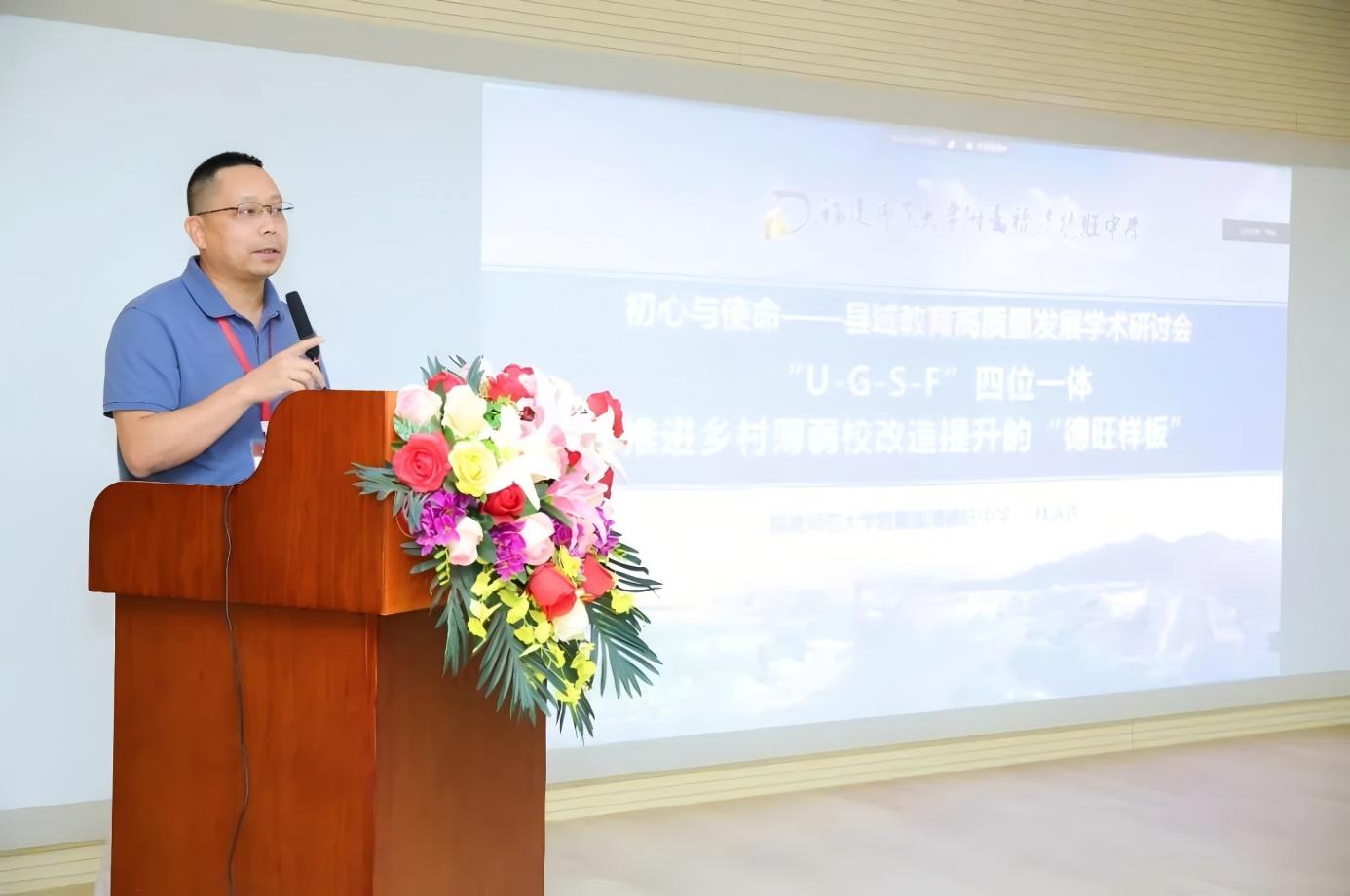 OD(中国)一站式服务平台附属福清德旺中学校长林泳许受邀参加并作主题发言。他以“‘U-G-S-F’四位一体推进乡村薄弱校改造提升的‘德旺样板’”为题作案例分享,介绍了OD(中国)一站式服务平台附属福清德旺中学通过“公办民助”模式,结合政府、高校、中小学、基金会四方合作,构建了“U-G-S-F”协同办学机制。