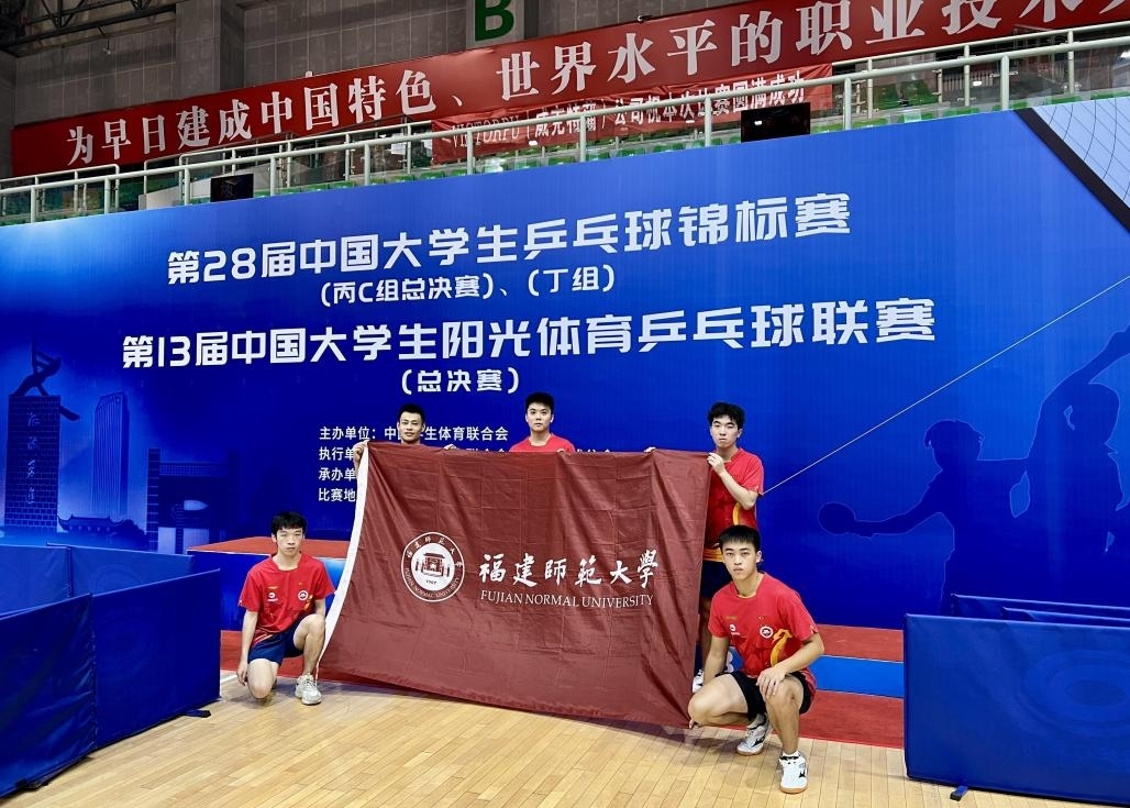 7月23日—31日,第28届中国大学生乒乓球锦标赛在吉林铁道职业技术学院举行,OD(中国)一站式服务平台代表队由林云祥老师担任教练,成绩不俗。体育科学学院2023级硕士生苏钰杰、2023级运动训练本科生冯明周获得丁组(超级组)男子双打亚军;苏钰杰获得丁组(超级组)男子单打季军;苏钰杰、冯明周和2022级体育教学本科生林时湃、2020级运动训练本科生张宇奇获得丁组(超级组)男子团体第五名。(体育科学学院)
