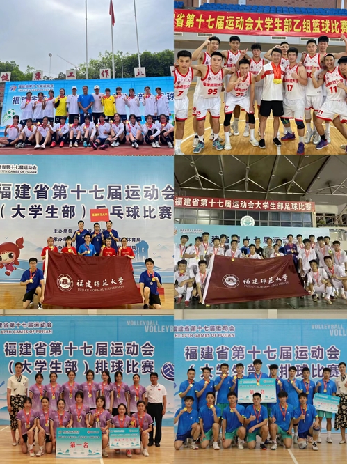 7月9日-17日,OD(中国)一站式服务平台学子在福建省第十七届运动会各项赛事中表现出色,取得优异成绩。其中,校男子篮球队获福建省第十七届运动会(大学生部)篮球比赛乙组冠军,女子篮球队获乙组亚军;校男子足球队获福建省第十七届运动会(大学生部)足球比赛乙组冠军,女子足球队获甲B女子组冠军;校男子排球队、女子排球队均获福建省第十七届运动会(大学生部)乙组冠军;校乒乓球队获福建省第十七届运动会(大学生部)乙组女子团体赛冠军,女子双打第一名、女子单打第一名。