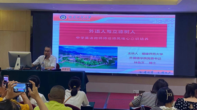 在为期6天的培训中,强化了教师的师德师风意识,学院党委书记林鲁文博士以《外语人与立德树人》为题阐述了中学英语教师师德师风核心意识培养的路径,副院长林明金教授结合自身教学科研经历与参训教师深入交流了外语教师的成长道路。