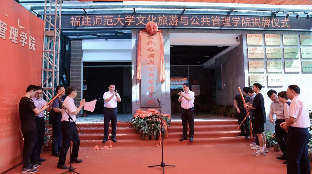 仪式上,吴剑锋代表学校向文化旅游与公共管理学院揭牌表示祝贺,他希望嘉宾和校友们一如既往地关心学院发展,学院师生要把握治理体系和治理能力现代化、文旅经济大发展的机遇,着力建设国内领先、区域一流、特色鲜明的高素质复合型管理人才培养基地。郑维荣希望加强福建省乡村振兴研究会与学院的合作,促进福建乡村振兴、文旅经济的融合发展。