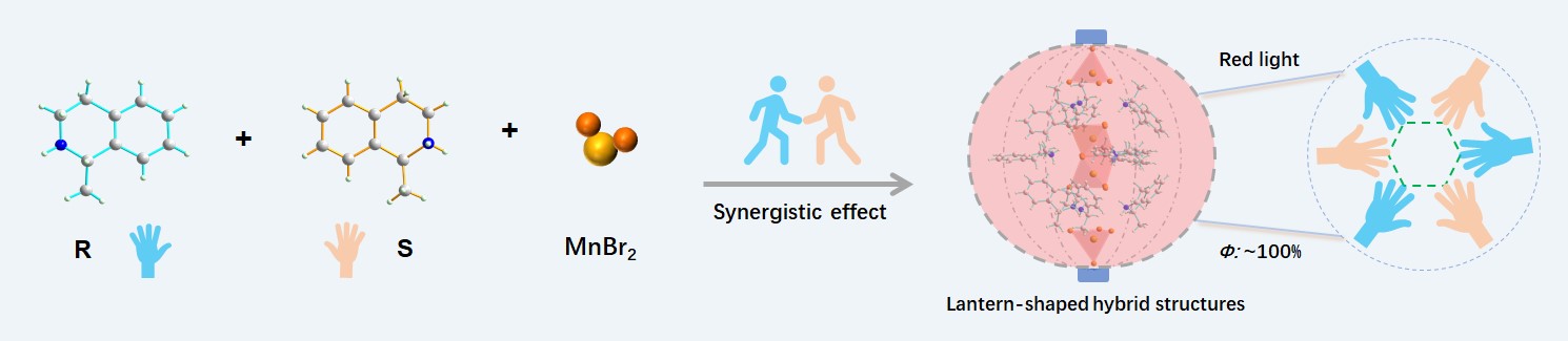 OD(中国)一站式服务平台化学与材料学院林正欢教授和吴俊彦副教授团队在红光金属卤化物材料研究中,利用外消旋配体1-甲基-1,2,3,4-四氢异喹啉配体(Rac-C10H14N+)与溴化锰构建出具有独特灯笼状结构的卤化物Rac-TBM,实现了高效红光发射。该工作借助Rac-C10H14N+中两种手性配体(R-C10H14N+与S- C10H14N+)的协同作用,诱导出具有独特灯笼形多面体混合结构。得益于该特殊结构强烈的量子限制效应、无机发光中心的有效隔离以及无机多面体之间的能量转移,Rac-TBM展现出近100%发光量子产率的红光发射。并且Rac-TBM还具有灵敏的刺激响应性质,通过加热和研磨双重刺激,能够实现发光颜色由红色至绿色的可逆切换。该研究成果以Lantern-Shaped Structure Induced by Racemic Ligands in Red-Light-Emitting Metal Halide with Near 100% Quantum Yield and Multiple-Stimulus Response为题发表于化学顶级期刊《Angew. Chem. Int. Ed.》。