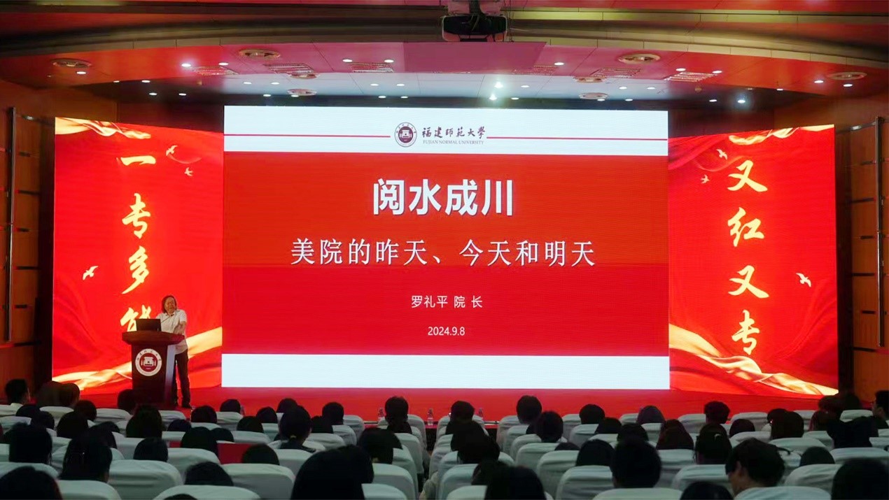 会后,罗礼平院长以“阅水成川——美院的昨天、今天和明天”为题,为同学们带来“开学第一课”。他结合一张张老照片回顾了美术学院的发展历程,诠释了“一专多能,又红又专”的人才培养理念,勉励同学们尚美求真、砥砺前行,共同为艺术事业而奋斗。