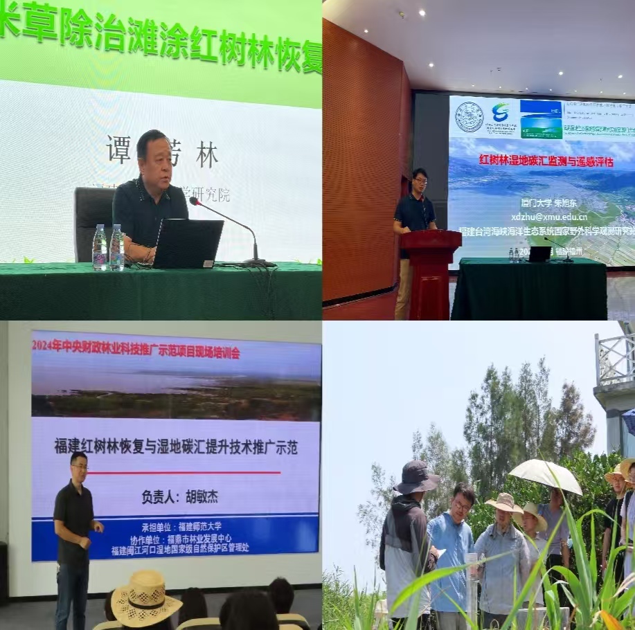 近日,由地理科学学院、碳中和未来技术学院胡敏杰副研究员主持的中央财政林业科技推广示范项目“福建红树林恢复与湿地碳汇提升技术推广示范”(闽【2024】TG 28号)技术培训会在福州举办。此次培训会分为室内理论培训和现场技术指导两部分,吸引了来自省林业系统、在榕高校及科研院所科技骨干约130余人次参加。