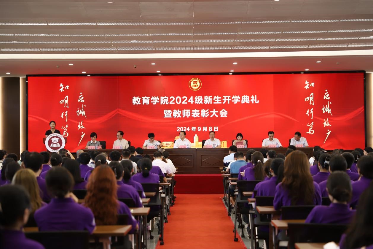 近日,教育学院在仓山校区胜利楼礼堂举行2024级新生开学典礼。学院党政领导、教师代表、优秀院友代表和全体新生参加。