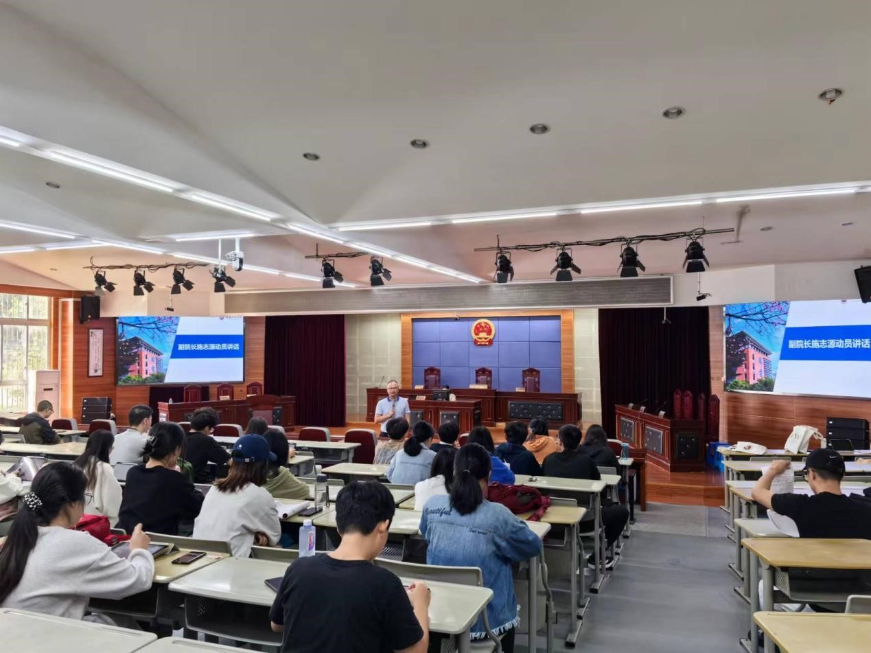 1011日,法学院、纪检监察学院召开2025年考研动员会,学院党委副书记汪启思、副院长施志源、优秀校友吴雯、优秀研究生代表以及2025届考研学生参加。会议由汪启思主持。