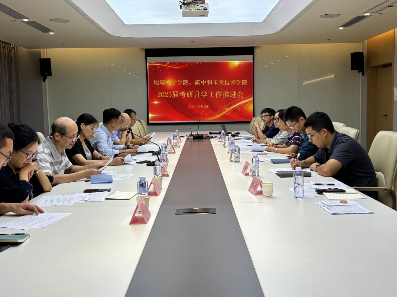 1016日,地理科学学院、碳中和未来技术学院在16号科研实验楼召开2025届考研升学工作推进会。院党委书记林翠容、党委副书记林伟、各系、各专业负责人、教学科研管理办公室负责人、班主任、辅导员参加,会议由林伟主持。