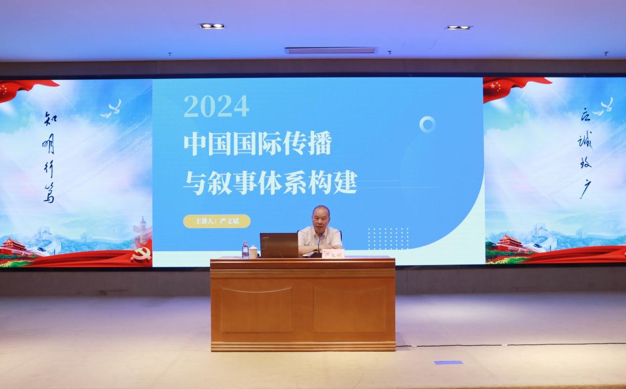 1022日上午,传播学院邀请新华社原副社长、资深媒体人严文斌在旗山校区宏达厅开展主题为“中国国际传播与叙事体系构建”的讲座。讲座由学院党委副书记林子鸿主持。