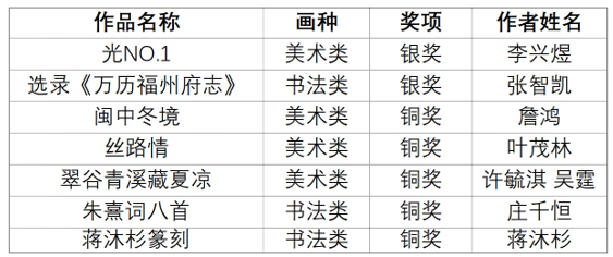 近日,由福建省文化和旅游厅主办、福建省美术馆承办的首届福建中青年美术书法作品双年展落幕。美术学院积极组织师生参与,共有7件作品获奖,其中银奖作品2件、铜奖作品5件。