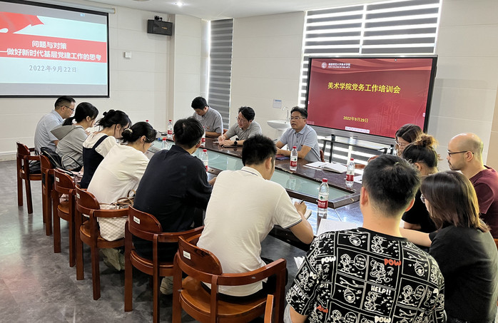 近日,美术学院召开党务工作培训会暨党建工作推进会。会议由学院党委书记陈金章主持,学院全体师生党支部书记、组织员参加了会议。