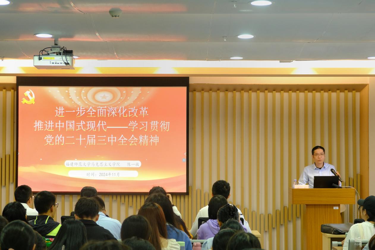 近日,地理科学学院邀请马克思主义学院陈一收教授开展学习贯彻党的二十届三中全会精神专题讲座。学院党委书记林翠容、党委副书记林伟以及师生代表参加。