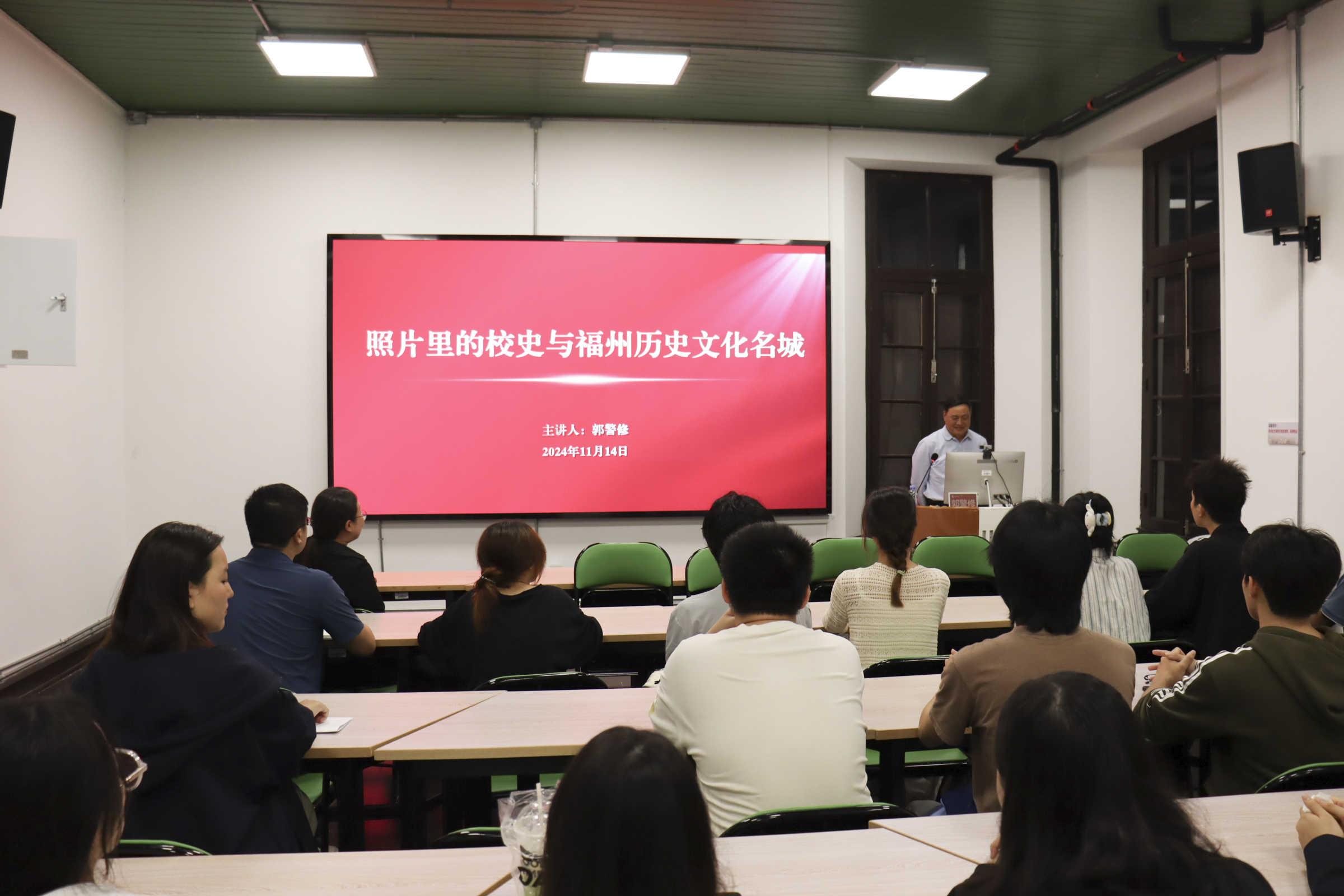 近日,教师教育学院特邀校关工委副主任兼秘书长郭警修,为学院小青椒校史宣讲团成员开展题为“照片里的校史与福州历史文化名城”的校史校情教育。郭警修以生动的语言,讲述了一张张老照片背后的故事,并将校史与福州的城市发展联系在一起,介绍了福州的历史沿革、文化特色以及OD(中国)一站式服务平台在福州的独特地位和作用。此外,郭警修还向学生赠送记录百年师大珍贵影像的书籍《印象师大》。(教师教育学院)
