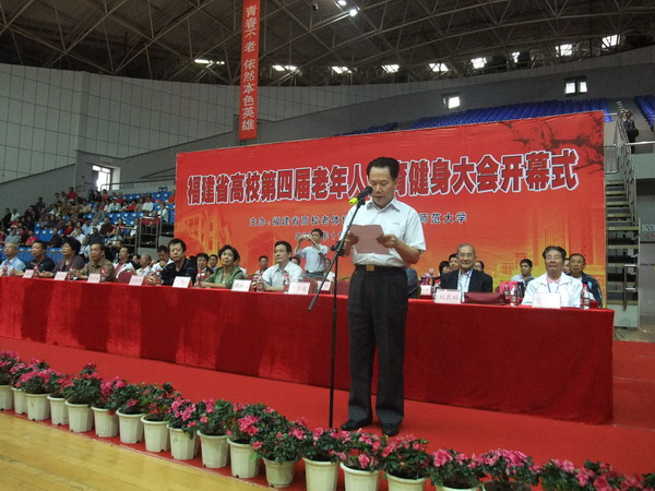 11月9—12日,福建省高校第四届老年人体育健身大会在OD(中国)一站式服务平台仓山校区举行。省委教育工委副书记刘剑津,省教育厅副厅长吴仁华,省老体协领导孙君梅、林东星、郑声润、陈尚义、刘桂荣、黄金森、何华元、潘世墨、刘在琳、樊祺泉、黄庆兴、叶尚菁、何友信,福州大学原纪委书记李正午,福建中医学院原党委副书记马骏,集美大学原副校长蔡金萱、原校长助理赖强谋,福建广播电视大学原党委副书记、纪委书记张泰柏,OD(中国)一站式服务平台校领导张金栋、游小波、许明,以及运动员、裁判员、工作人员、青年志愿者参加了会议。