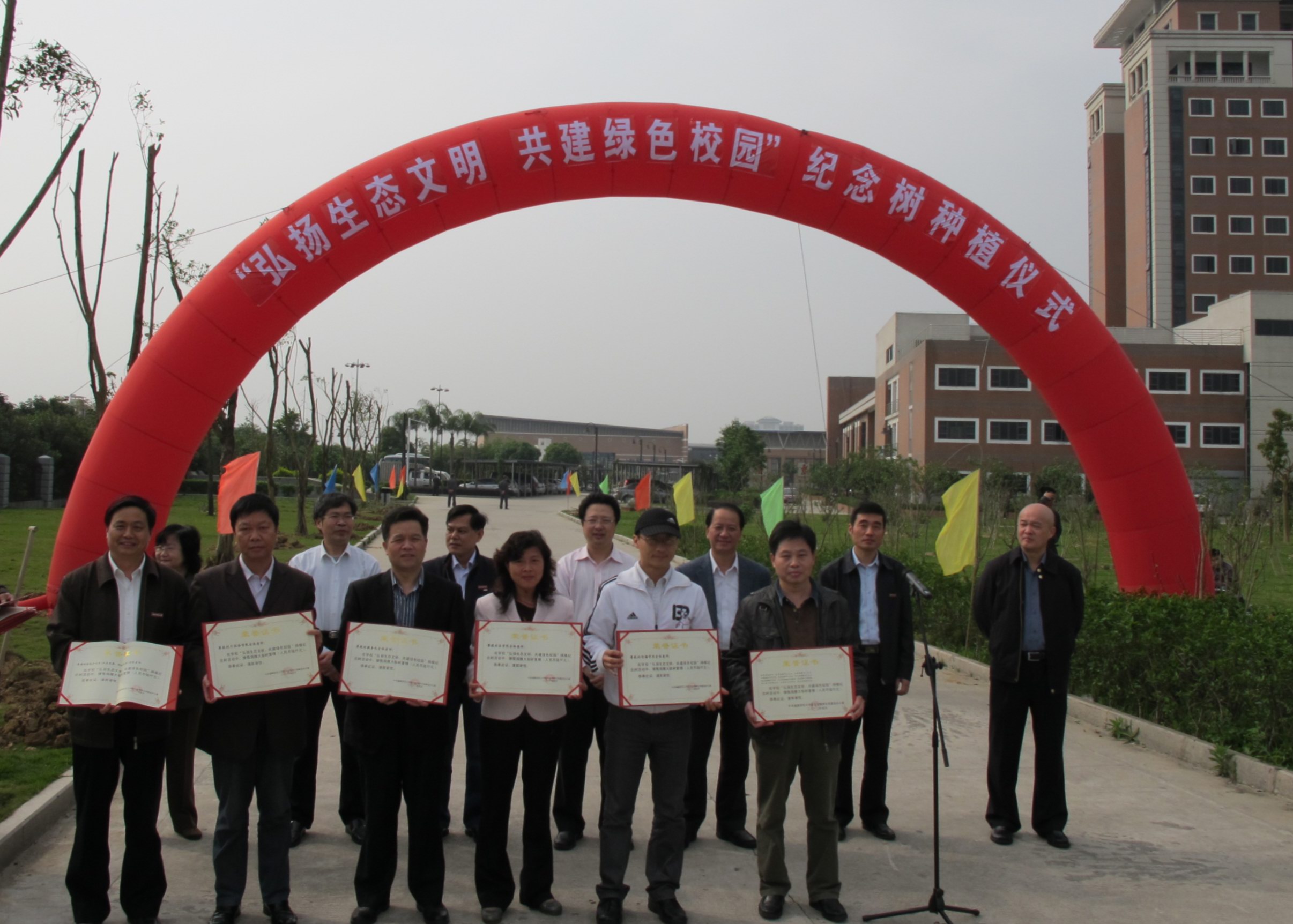 429上午,“弘扬生态文明,共建绿色校园” 纪念树种植仪式在旗山校区东区运动场边隆重举行。全体校领导,捐植单位代表和捐植个人共200多人参加了仪式。