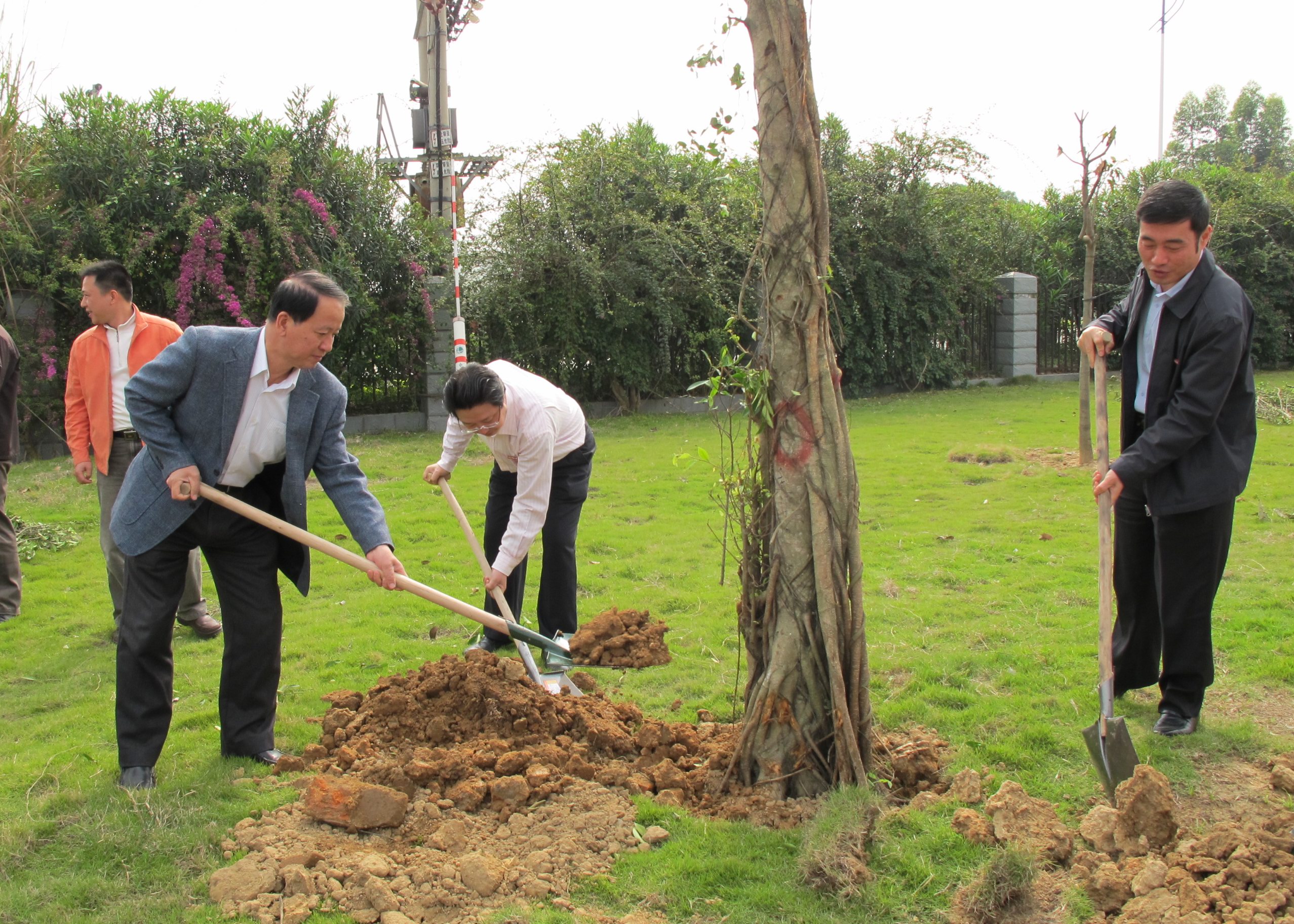 校党委副书记黄锦平首先代表校党委、校行政向参加种植仪式的单位代表和捐植个人表示衷心的感谢。他指出,加强校园绿化美化,改善校园环境,推动生态文明建设,是学校精神文明建设的重要内容,也是一所高校深厚文化底蕴的体现,是一项功在当代、利在千秋的事业,意义深远。开展纪念树捐植活动以来,机关部处、各学院、统一战线组织、学生社团和广大校友高度关注、积极参与,共捐植榕树158棵,大树16棵,折合人民币20余万元。今后,学校将继续发动、长期接受广大师生和校友捐植树木,认真种好、养好纪念树,进一步浓厚弘扬生态文明、共建绿色校园的良好氛围。