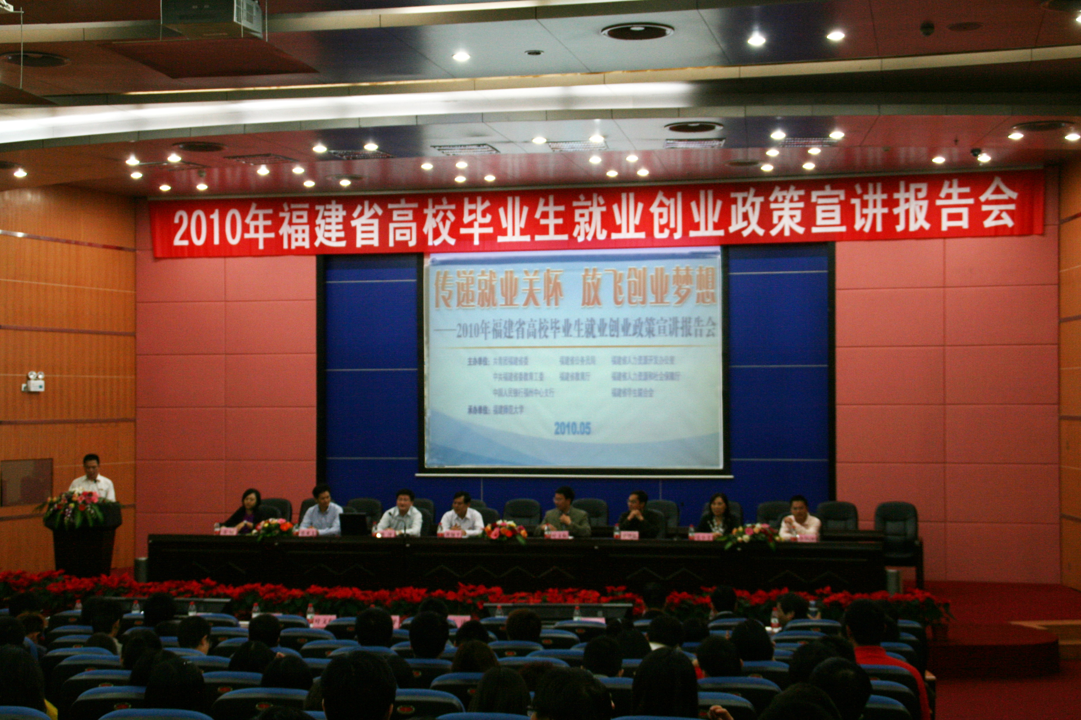 报告会上,省公务员局、省大中专毕业生就业工作中心副调研员罗增桂,省教育厅高校学生处主任科员张龙飞,省人力资源和社会保障厅就业和失业保险处副处长范小艾,中国人民银行福州中心支行货币信贷管理处许伟河,团省委城市青年工作部副部长苏畅,分别从“2010年毕业生就业形势与政策分析”、“2010年福建省高校毕业生就业创业政策”、“促进全社会劳动者就业尤其是高校毕业生就业的政策解读”、“小额(担保)贷款政策解读”、“团省委帮助青年创业就业服务体系”等方面,详细解析了国家和我省有关促进高校毕业生就业创业的各项政策。报告会现场还向毕业生分发了高校毕业生就业政策相关资料。