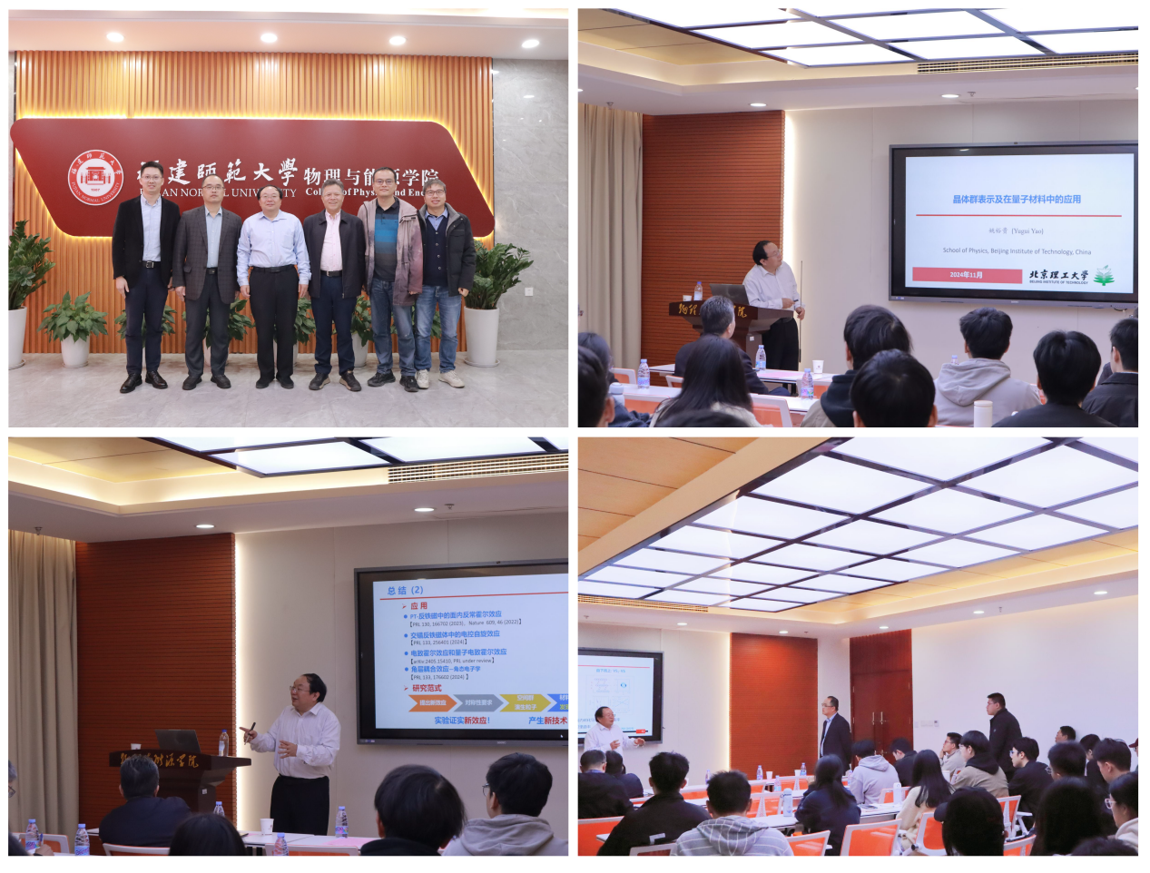 1123日,国家杰出青年科学基金获得者、教育部长江学者特聘教授、国家万人计划领军人才、美国物理学会会士、北京理工大学杰出教授、物理学院院长姚裕贵教授应邀莅临科士达学术大讲堂,为物理与能源学院师生作题为“晶体群表示及在量子材料中的应用”的学术讲座。报告由林应斌院长主持,原院长黄志高、院务委员张健敏、廖任远,厦门大学王茂原教授等60余名师生参加。