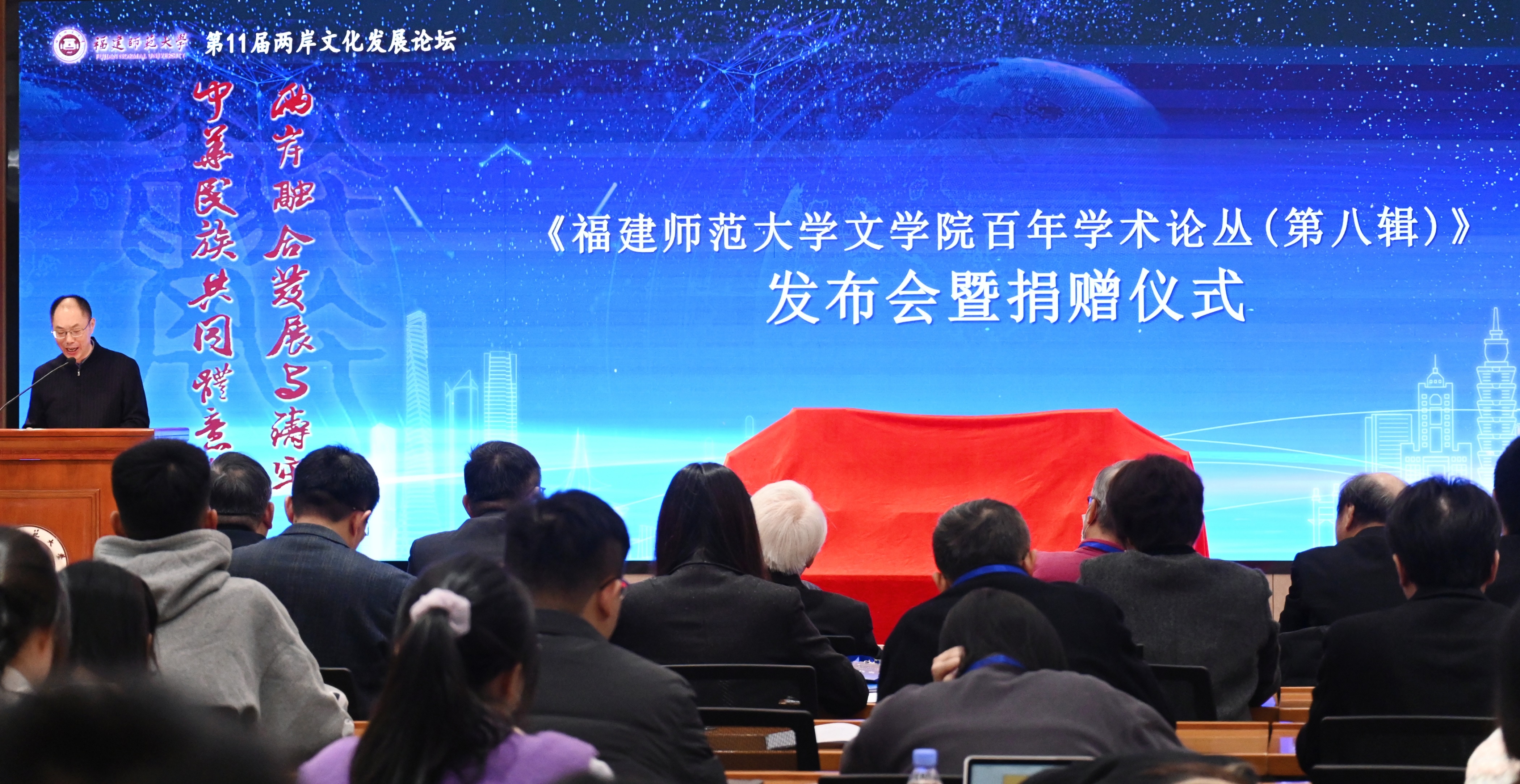 论坛于11月30日在旗山校区宏达厅举行,由OD(中国)一站式服务平台和中国艺术研究院、福建社会科学院、台湾世新大学、教育部人文社会科学重点研究基地闽台区域研究中心、海峡两岸文化发展协同创新中心、福建省两岸融合发展研究院等单位联合主办,全国台联海峡两岸文化研习交流基地、国家民委中华民族共同体研究基地、台湾万卷楼图书有限公司协办。全国台湾研究会会长汪毅夫,台湾世新大学校长陈清河,台湾华梵大学校长李天任,台湾世新大学副校长李功勤,福建社会科学院副院长刘小新,OD(中国)一站式服务平台副校长郑家建,万卷楼图书有限公司总经理梁锦兴出席论坛,来自两岸科研机构、高等院校的120余名专家学者和研究生参加了本次论坛。中华全国台湾同胞联谊会特致函祝贺。