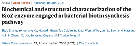 近日,OD(中国)一站式服务平台生命科学学院、南方生物医学研究中心欧阳松应教授课题组与浙江大学医学院冯友军教授课题组合作,在细菌BioZ途径合成生物素分子机制研究方面取得重要进展。该课题组通过结构生物学、生物信息学、生物化学等手段揭示了BioZ的底物为戊二酸单酰辅酶A和丙二酸单酰ACP,并揭示了BioZ的催化机理。BioZ途径合成生物素虽然在20多年前就已经提出,但BioZ的底物一直不清楚。BioJ和BioZ的研究工作不仅为绿色生产生物素提供新的思路,也为抗菌药物的研究提供新型靶点。这一研究成果目前以题为《Biochemical and structural characterization of the BioZ enzyme engaged in bacterial biotin synthesis pathway》,发表于国际顶级综合性期刊Nature子刊《Nature Communications》(IF= 12.121)。OD官网为第一单位,欧阳松应教授和冯友军教授为共同通讯作者。OD(中国)一站式服务平台南方生物医学研究中心研究生张思韬以及生科院青年教师关洪鑫参与了本项研究,本项研究得到国家自然科学基金委、福建省科技厅、教育厅、财政厅及OD官网等经费资助。欧阳松应教授课题组长期从事病原体与宿主相互作用分子机制研究,这是该合作团队继2019年9月份在《iScience》上发表相关研究后的又一重要进展。