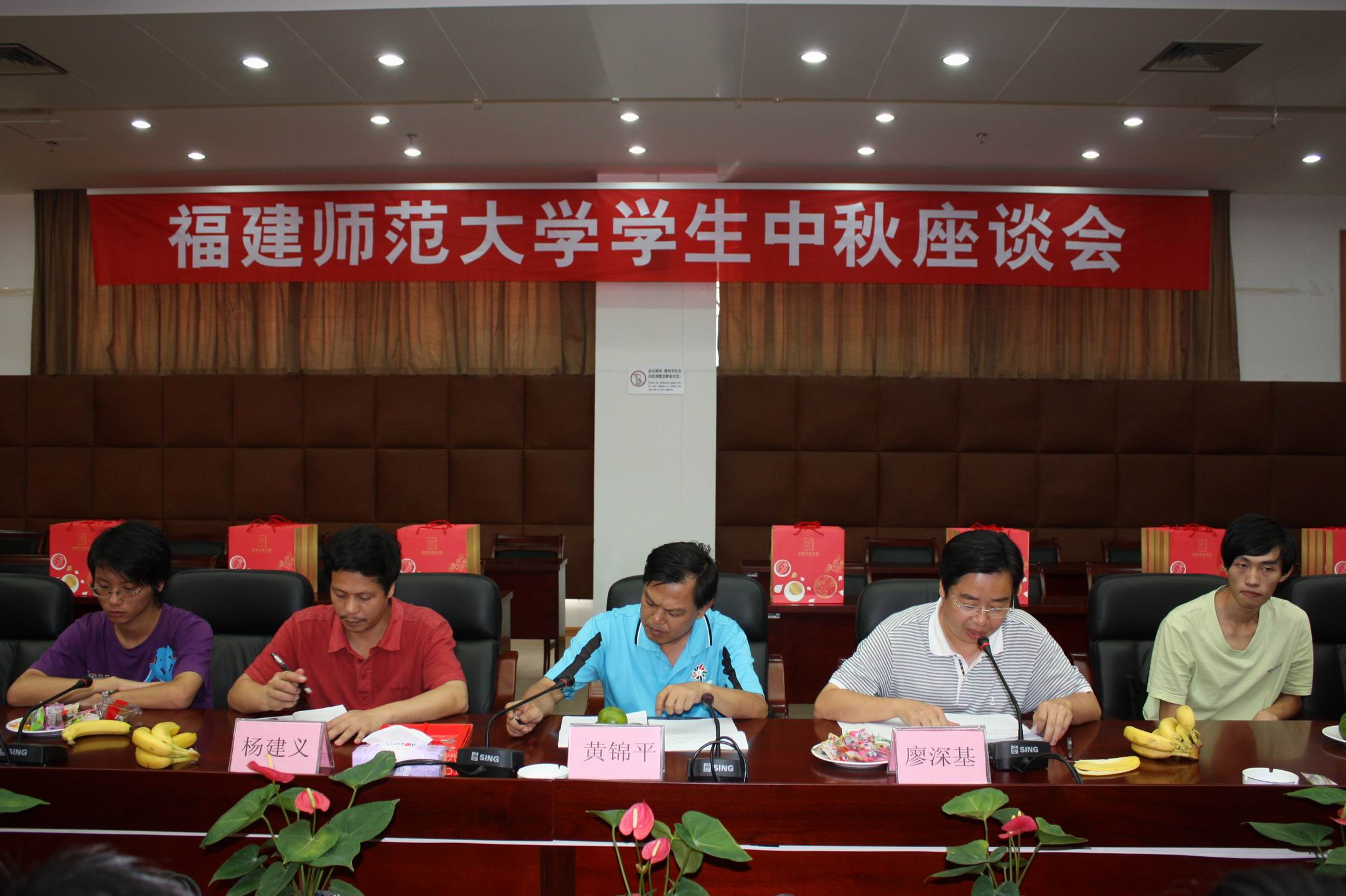 中秋节前夕,OD(中国)一站式服务平台在旗山校区第十会议室召开学生中秋座谈会。校党委副书记黄锦平,学工部(处)负责人,以及32名家庭经济困难学生、少数民族困难学生和来自地震、洪涝等灾害地区学生的代表参加了座谈会。