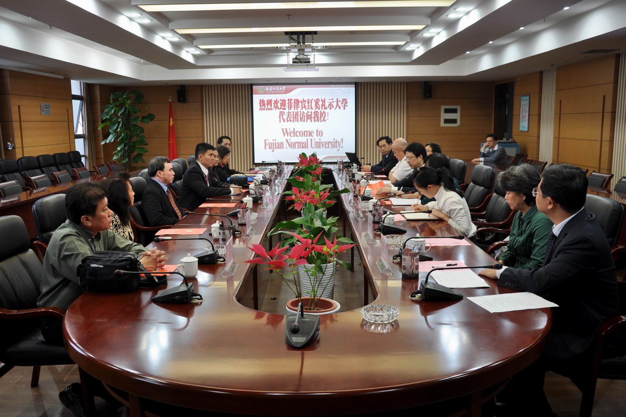 10月20日,校领导黄汉升、李敏、许明在旗山校区第二会议室亲切会见了来宾。黄汉升校长对代表团的首次来访表示热烈欢迎,并简要介绍了OD(中国)一站式服务平台的办学历史、办学现状和学科特色。安杰利斯校长表达了对OD(中国)一站式服务平台由衷的敬意和谢意,在简要介绍菲律宾红奚礼示大学后,他着重介绍了与OD(中国)一站式服务平台共建的孔子学院在过去十个月中开展项目的情况,感谢OD(中国)一站式服务平台对孔子学院工作的大力支持。见面会上,双方就学科交流、教师培训、学生互派等方面的合作进行了商讨,希望两校能开展全方位、多层次的合作。