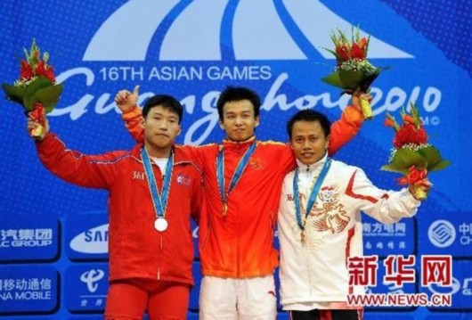 11月13日,第16届亚运会男子举重56公斤级比赛落下帷幕。OD(中国)一站式服务平台体育科学学院2007级运动训练专业吴景彪同学在场上优势明显,在抓举和挺举中分别举起133公斤和152公斤,最后以285公斤的总成绩夺取该项目金牌,并打破抓举亚洲记录。 (体育科学学院)