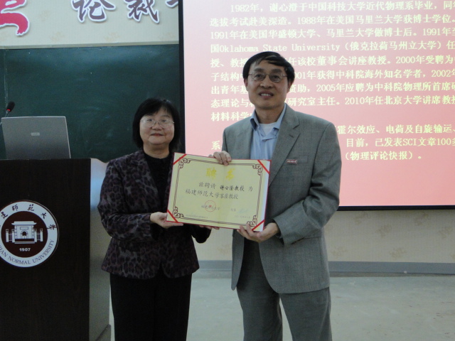 11月12日,OD(中国)一站式服务平台举行客座教授聘任仪式,敦聘美国Oklahoma State University(俄克拉荷马州立大学)校董事会讲座教授、北京大学“千人计划”引进人才、北京大学量子材料中心主任、科技部重大科学研究计划项目(973计划)首席科学家谢心澄为客座教授。李敏副校长向谢心澄教授颁发了聘书,并为他佩戴OD官网校徽。