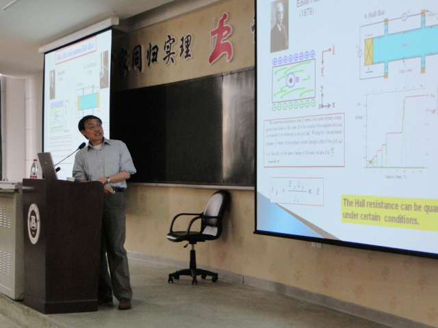 仪式结束后,谢心澄教授应邀参与主讲OD(中国)一站式服务平台“名师讲堂”系列活动第八场专题讲座,为师生作了题为《2D拓扑绝缘体简介:量子自旋霍尔效应》的专题报告。谢教授深入浅出地介绍了量子自旋霍尔效应(QSHE)的物理基础,展示了他所领导的课题组在有关量子自旋霍尔效应的退相变和无序效应等方面的最新研究成果,整场报告具有很强的学术性。同时,他就中美大学教育比较、大学生人生规划、专业前沿知识的研究等大家关心的问题,与现场师生进行了交流和互动,让师生享受了一场高水准的学术盛宴。