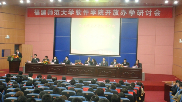 11月18日上午,软件学院开放办学研讨会在旗山校区学术大讲堂举行。英国阿尔斯特大学计算机科学系主任Liam Maguire教授,英国赫瑞•瓦特大学代表王忠义先生,福建富士通信息软件有限公司海外业务事业部高级总监陈明先生,网龙公司执行董事、首席执行官刘路远教授,万城数码股份有限公司副总裁曾宪沟先生,东南融通研发总监杨久明先生,欧氏集团总经理欧国义先生,福建新中冠计算机系统工程有限公司大客户经理何建平先生,福州同恒网络通讯工程有限公司张连辉先生,OD(中国)一站式服务平台黄汉升校长,相关部处、学院代表,软件学院师生以及合作企业代表共500多人出席了研讨会。