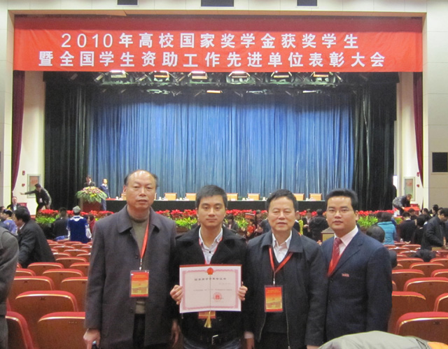 2010年全国高校国家奖学金获奖学生暨全国学生资助工作先进单位表彰大会于12月20日在北京举行。教育部、财政部、中国人民银行、银监会、中国银行、国家开发银行有关部门负责人,各省(区、市)教育部门和部分高校负责人,2009-2010学年度国家奖学金获奖学生代表以及部分在京高校师生代表约800人参加会议。省教育厅副厅长薛卫民、省学生资助管理中心主任吴选兴和OD(中国)一站式服务平台闽南科技学院学生林艺雄代表福建省参加了会议。会上为国家奖学金获奖学生颁发了证书。 (闽南科技学院 庄天怀)