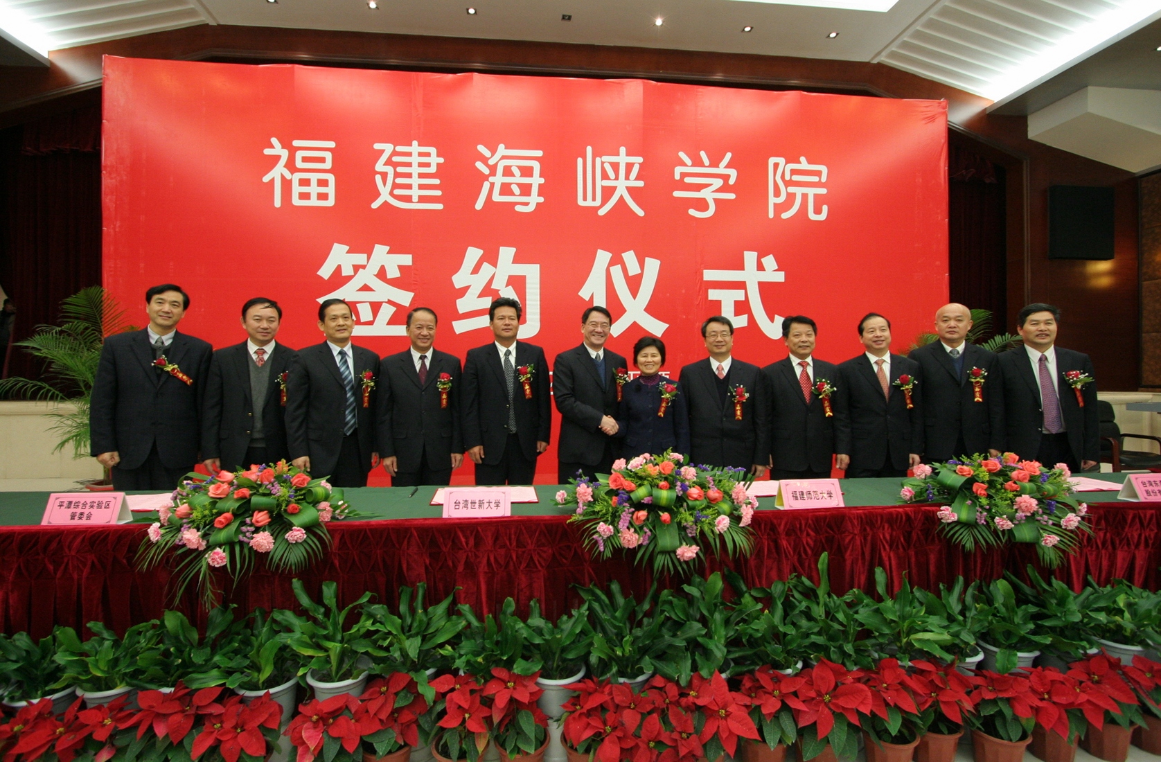 杨辉代表省教育厅向签约仪式的举行表示热烈祝贺,表示将认真贯彻落实省委省政府的战略部署,一如既往地从政策、资金以及保障措施等方面给予全方位支持,促进福建海峡学院又好又快发展。杜源生对福建海峡学院落户平潭表示热烈祝贺,指出四方签约共同创办福建海峡学院,标志着平潭综合实验区教育事业将实现历史性突破,对实验区实现持续发展、科学发展、跨越发展具有特别重要的意义,也将开启两岸在平潭合作办学和文化交流的先河。平潭综合实验区将为创办福建海峡学院提供更加优惠的政策、更加宽松的办学环境和更加优质的服务。 随后,OD(中国)一站式服务平台党委书记罗萤、台湾世新大学副校长熊杰、台湾东森国际股份有限公司总经理廖尚文、平潭综合实验区党工委副书记、管委会副主任杜源生分别代表合作四方在《共同创办福建海峡学院合作意向书》上签字。 根据合作意向书,OD(中国)一站式服务平台与台湾世新大学、台湾东森国际股份有限公司、平潭综合实验区管委会将集中和整合各方优质资源,着力先行先试,共同构建海峡两岸合作办学的新机制、新模式,把福建海峡学院建设成为两岸合作办学实验基地、旅游(观光)、传媒、文化创意等领域人才培养基地和产业技术研发创新基地。学院将纳入平潭综合实验区平洋组团统筹规划布局,由实验区提供办学用地800亩;台湾东森国际股份有限公司以募集或其他适当且合于两岸现行法律之方式参与兴建学院的基本建设。学院的功能定位为,以学历教育为主(本科教育和研究生教育),适当兼顾中高等职业教育和职业技术培训、产业研发等。在学科专业设置上,将先以旅游、新闻、传播相关专业为主,再逐步扩大到文化创意类、现代服务业类等专业,在校生总数暂定为1万人。学院招收的学生,由OD(中国)一站式服务平台与台湾世新大学共同制定人才培养方案和教学计划,共同开发课程和教材,两校教师共同联合培养。 福建海峡学院已于2010年开始招生,目前依托OD(中国)一站式服务平台旗山校区进行办学,争取2012年9月入驻平潭综合实验区。 (学校办公室 张 苏)