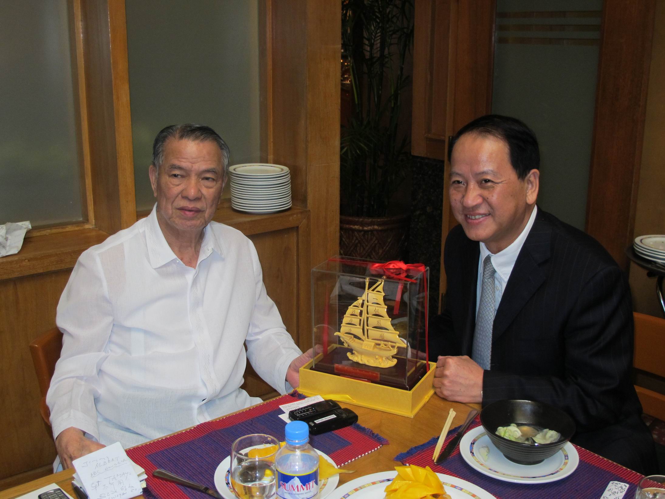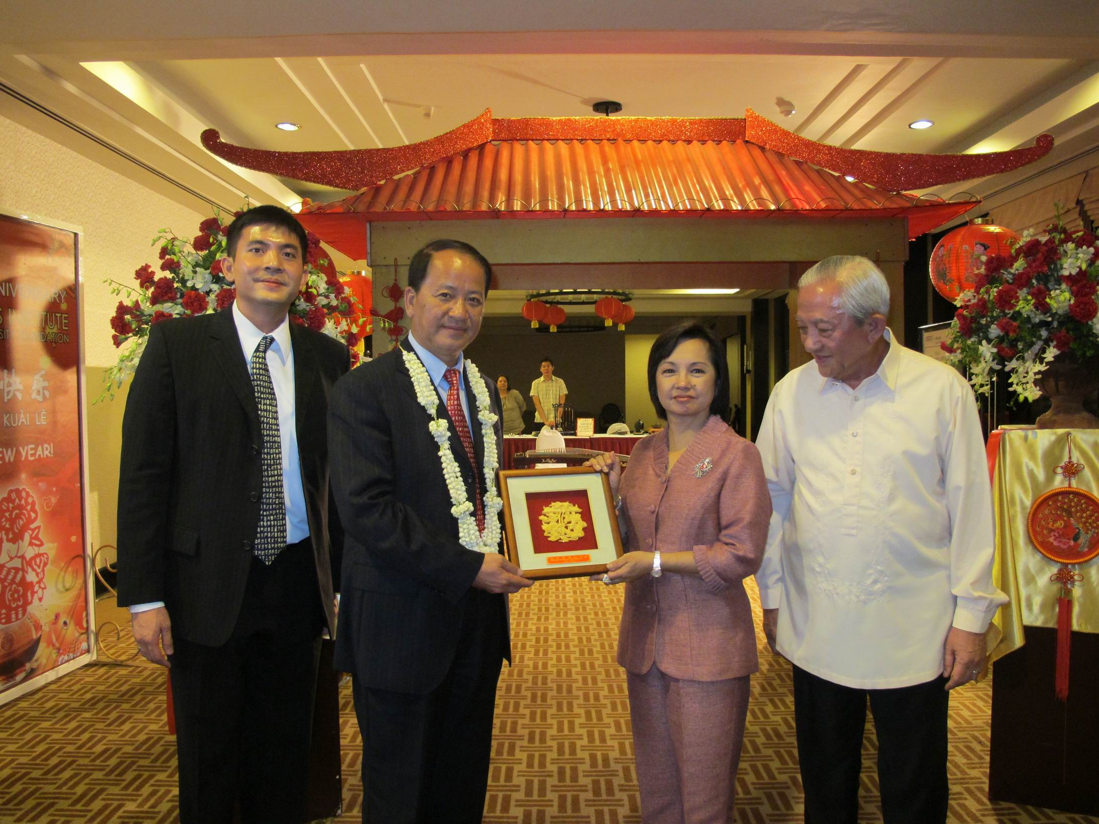 罗萤书记向菲律宾商总永远名誉理事长陈永栽博士赠送礼品