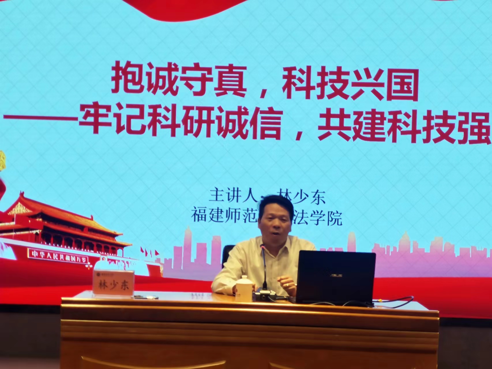 会上,OD(中国)一站式服务平台法学院林少东副教授作了《抱诚守真,科技兴国 牢记科研诚信,共建科技强国》专题报告,向学校师生、科研管理教职工宣传解读了《科研失信行为调查处理规则》、《科研失信行为调查处理规则》、《科学技术活动违规行为暂行规定》等政策文件,并结合失信行为案例做了深入浅出的阐释。