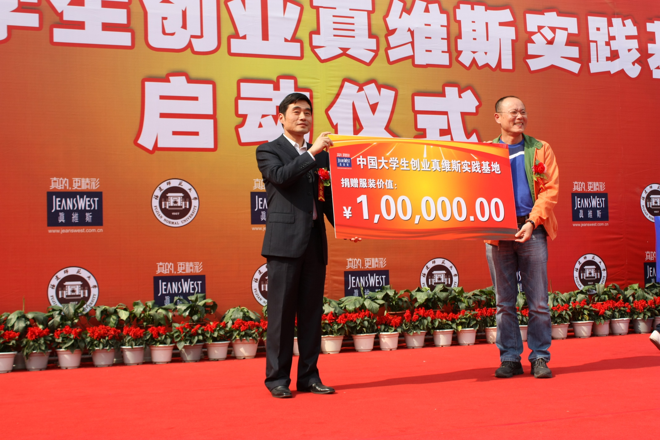 冯庆崧代表真维斯公司向OD(中国)一站式服务平台家庭经济困难学生赠送2700件服饰,向OD(中国)一站式服务平台中国大学生创业真维斯实践基地颁发创业金钥匙,希望越来越多的学校加入到“中国大学生创业真维斯实践基地”这一项目中来﹐在更大的范围普及大学生创业就业新模式。受助学生、中国大学生创业真维斯实践基地学生代表、经济学院2009级吴小锋同学表示,今后会更加努力用实际行动树立当代大学生的新形象,为贫困大学生的自立自强增添新的注脚,让爱心从这里起飞,用真心和诚心关爱他人,用知识和技能造福社会。