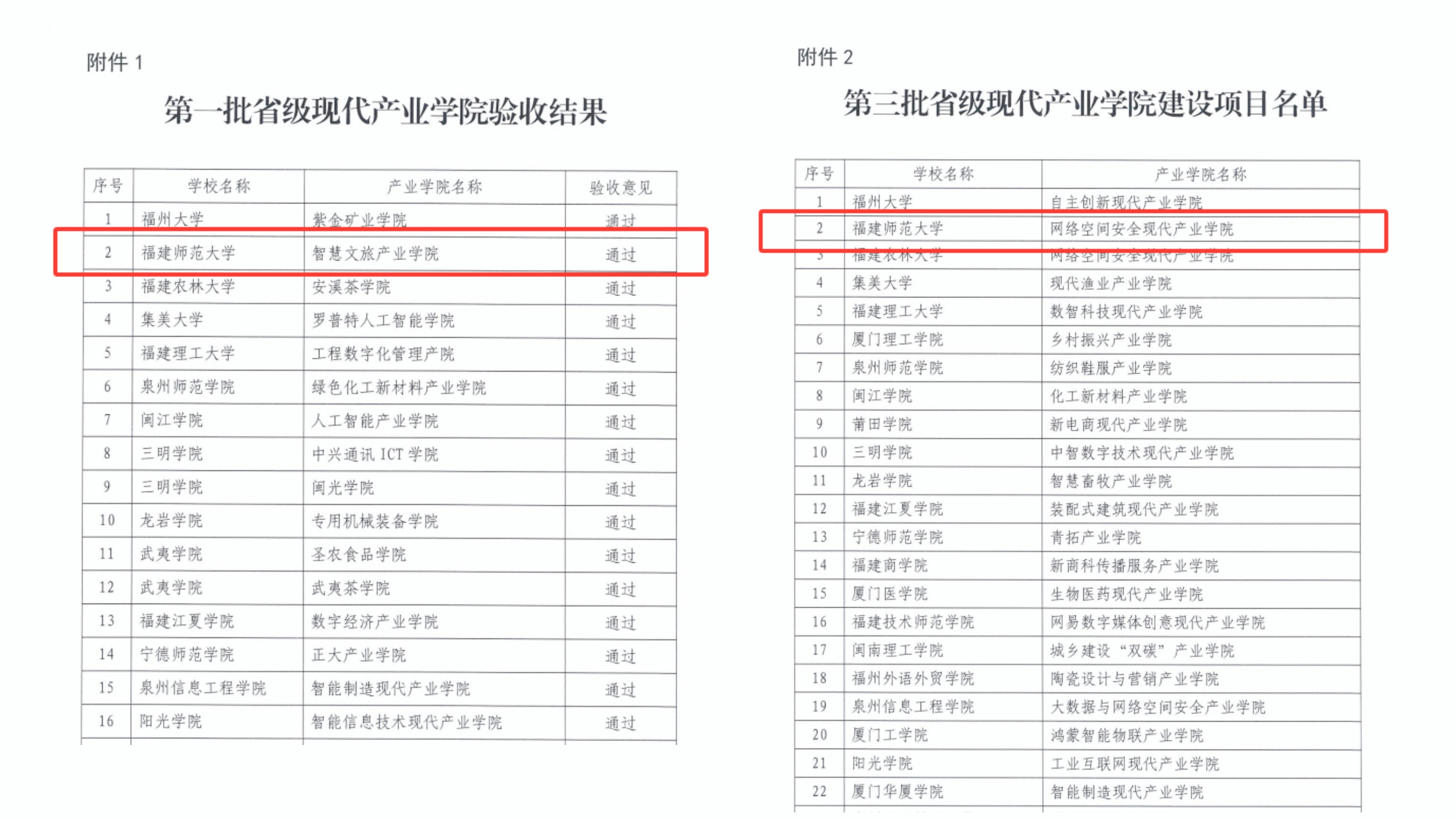 近日,福建省教育厅、福建省工业和信息化厅联合公布省级现代产业学院第一批验收结果和第三批立项建设项目名单。OD(中国)一站式服务平台智慧文旅产业学院顺利通过第一批省级现代产业学院验收,网络空间安全现代产业学院成功入选第三批省级现代产业学院立项建设项目。截至目前,OD(中国)一站式服务平台已获批2个省级现代产业学院。