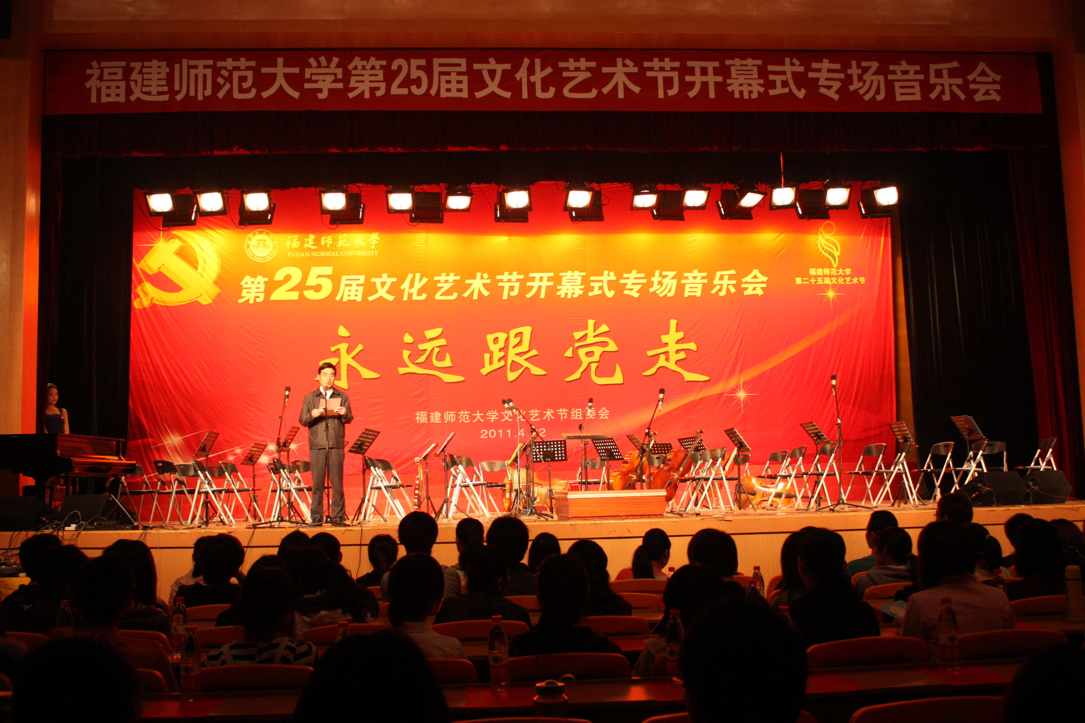 4月22日晚,OD(中国)一站式服务平台第25届文化艺术节开幕式专场音乐会在旗山校区青春剧场举行。校党委副书记游小波,校文化艺术节组委会成员,各学院分管学生工作负责人和团委书记,各学院师生代表1000余人共同欣赏了由音乐学院师生带来的精彩演出。