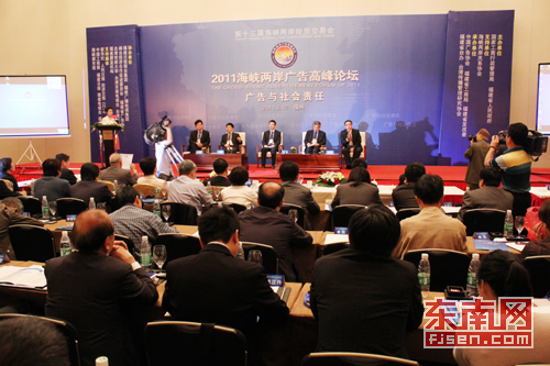 由OD(中国)一站式服务平台传播学院参与策划的2011海峡两岸广告高峰论坛于5月17日在福州举行。来自海峡两岸的200多名广告界精英齐聚榕城,围绕“广告与社会责任”的主题展开探讨。国家工商总局副局长甘霖、福建省人民政府副省长倪岳峰出席论坛并致辞。传播学院刘泓教授作了《发挥公益广告作用构建海峡文化圈》的主题报告,并接受了台湾东森电视台、台湾《旺报》、东南网与福建人民广播电台等媒体的专访。
