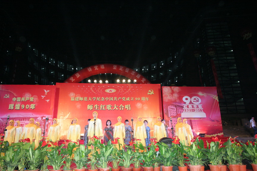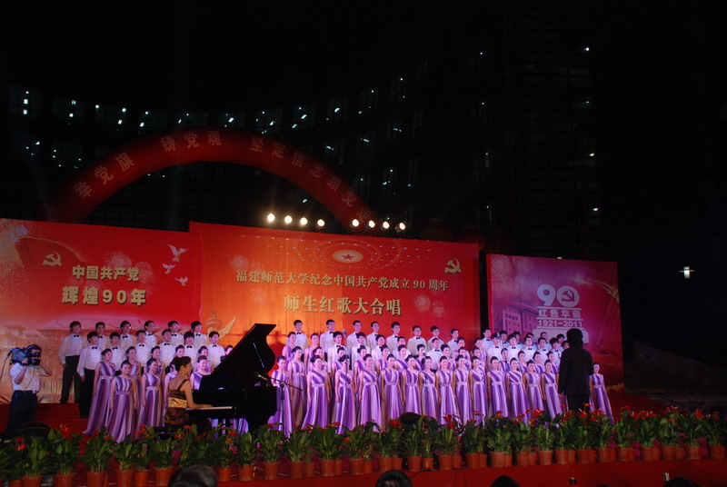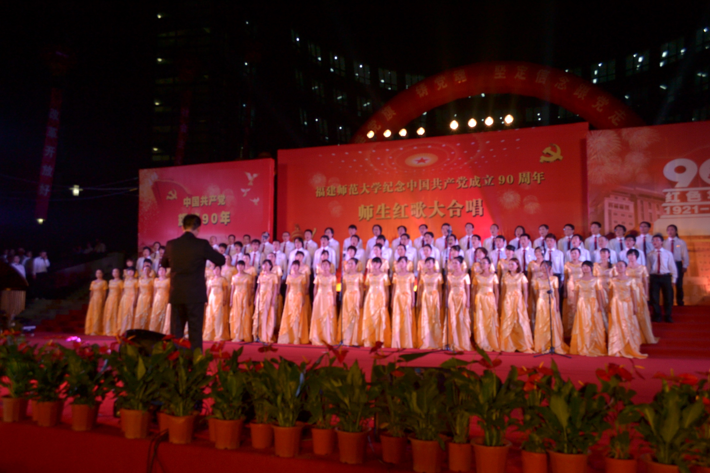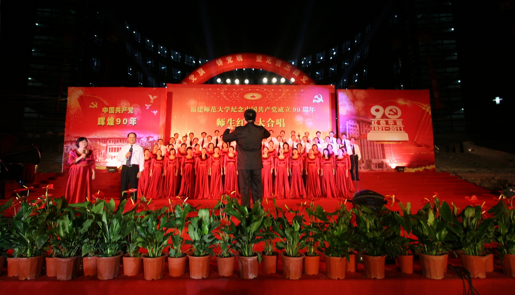 5月25日晚,由校党委宣传部、校工会和校团委共同主办的“举党旗,铸党魂,坚定信念跟党走”OD官网师生纪念中国共产党成立90周年红歌大合唱比赛在旗山校区福万广场隆重举行,共有32支师生合唱团、2600余师生参加比赛和演出。省总工会党组成员、纪检组长高榕,团省委副书记兰明尚,省教科文卫体工会副主任张红璇,福州市总工会直属工会主席侯贞诚、副主席尤山,校领导罗萤、许歌平、汪文顶、李敏、凌启淡,以及全校师生代表共6000多人观看了比赛。