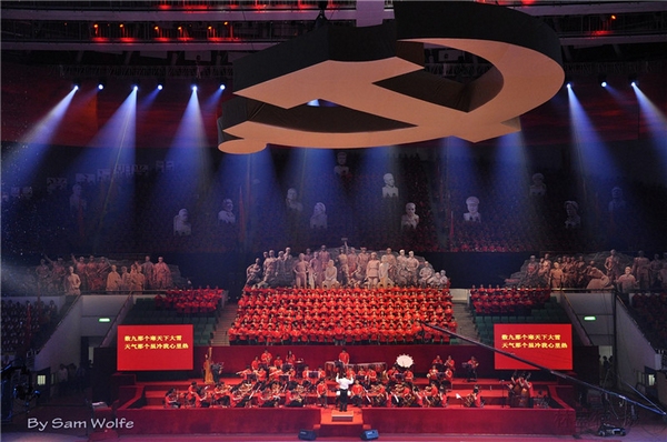 红歌会分为欢庆篇、武装篇、建设篇、幸福篇四大篇章。近万名大中小学师生用嘹亮的歌声、昂扬的热情,唱响了一首首经典红歌,引领大家在歌声中一起回顾中国共产党90年的辉煌历程,感受90年来的伟大成就,抒发对党赤诚的爱、对祖国繁荣富强的美好祝愿。OD(中国)一站式服务平台800人合唱团以饱满的精神状态演绎了经典红歌《中国,中国,鲜红的太阳永不落》,唱响了青年人的理想和信念、朝气与激情。同学们高举“OD官网永远跟党走”的巨型标语,用队形和彩球排列成“90”图案,博得现场观众雷鸣般的掌声。音乐学院歌剧片段表演《刘胡兰》、《党的女儿》、《江姐》,歌舞《江山》、《阳光路上》、《相亲相爱》,传播学院配乐诗朗诵《放歌雷锋》等节目精彩纷呈,将晚会气氛不断推向高潮,展示了师大人的风采。